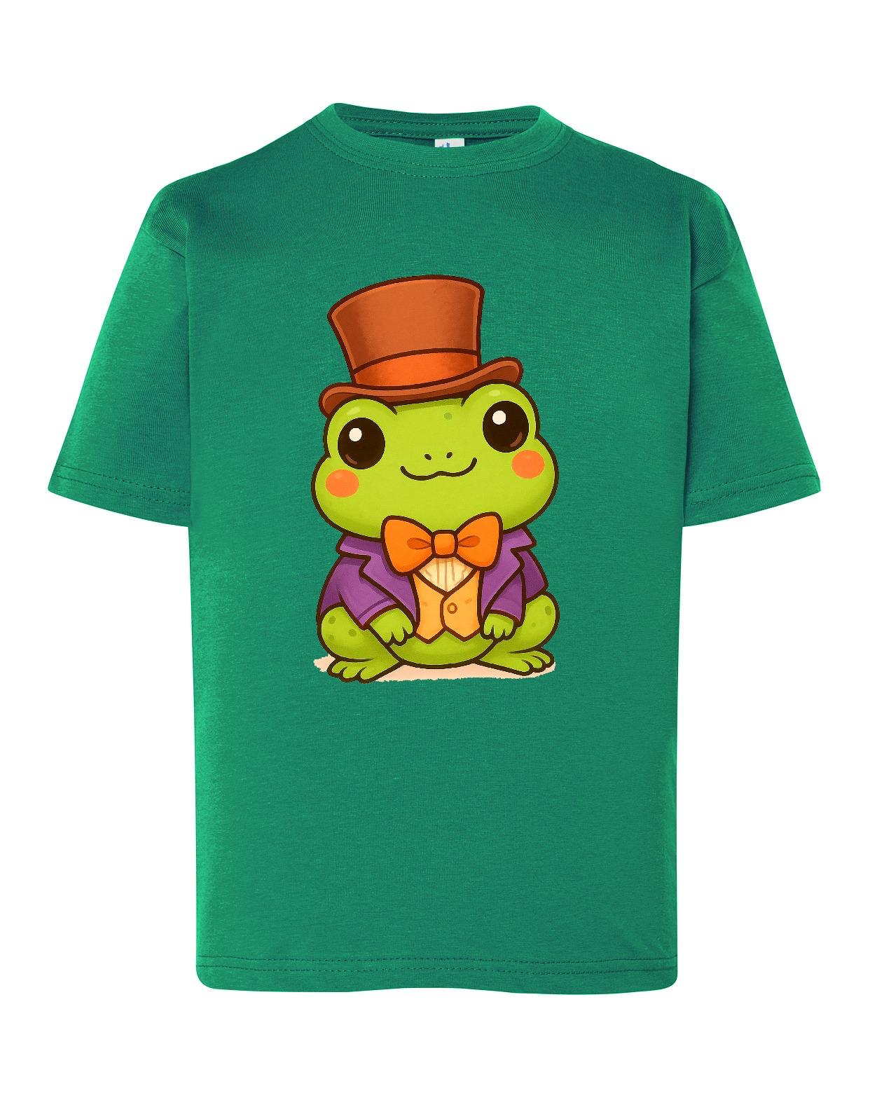 Descripción del Diseño: La camiseta presenta un diseño divertido de una rana vestida con un sombrero y una corbata, lo que le confiere un aspecto alegre y original. El verde de la camiseta combina perfectamente con los colores del sombrero y la corbata, haciendo que el diseño sea prominente y fácilmente reconocible.