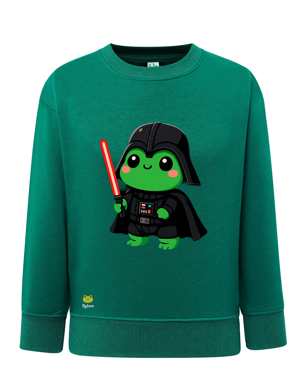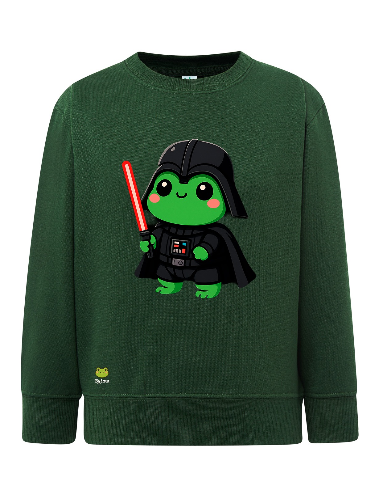 Impreso en color de una rana con un uniforme del señor sith, completo con capa, sombrero y sable de luz.